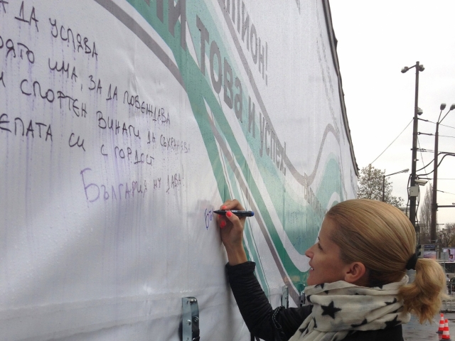 Тереза Маринова беше сред първите, които оставиха на камиона своето пожелание.