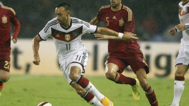 Испанците започнаха по-активно, но първата добра възможност бе за световния първенец. Руди центрира отдясно и в наказателното поле неговият съотборник от Хофенхайм Кевин Фоланд засече от движение, но не затрудни Касияс.