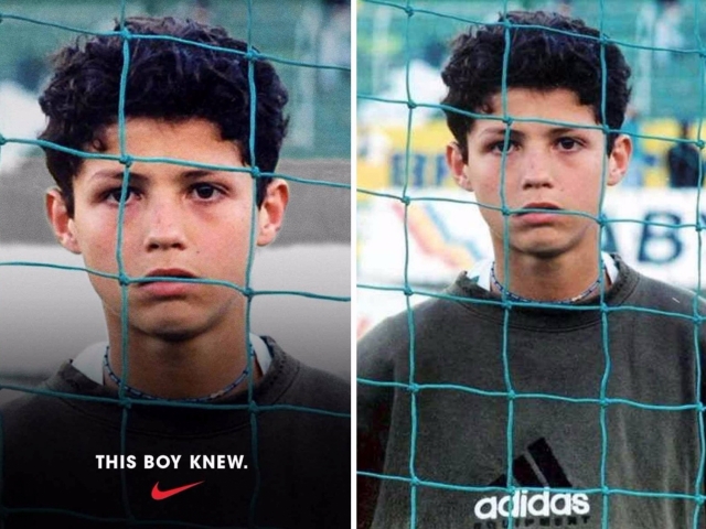 Американският концерн за спортни стоки Найк се изложи с реклама на Кристиано Роналдо, в която използва негова детска снимка с дреха на конкурента Адидас.