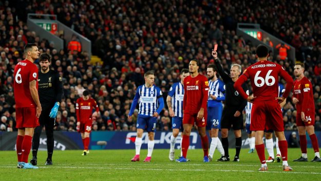 Върджил ван Дайк вкара два пъти с глава през първото полувреме и това бе много важно, защото Ливърпул получи червен картон късно в мача и Брайтън дори върна едното попадение. "Червените" обаче удържаха опита на гостите за натиск и изравниха клубния рекорд от 31 поредни мача в първенството без загуба.