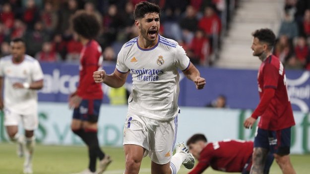 Буквално секунди преди паузата Реал вкара втори гол и възстанови преднината си. Камавинга изведе отлично Себайос, който стреля от воле, но вратарят Ерера изби с крак. За беда на Осасуна обаче Марко Асенсио дебнеше пред вратата и реализира за 1:2.