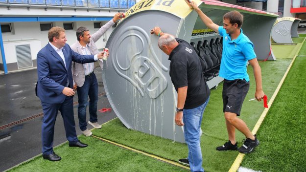 Виктория Пилзен има чисто нови резервни скамейки с нестандартна форма на своя стадион "Досан Арена". Чешкият елитен клуб ще рекламира една от най-популярните бири в страната "Гамбринус" по време на мачовете пред собствена публика.