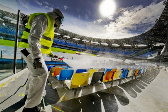 Стадионът на Наполи – "Сан Паоло", беше дезинфекциран, за да се предотврати опасността от заразяване с коронавирус.