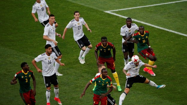 Германия победи Камерун с 3:1 в двубой от група "В" на турнира за купата на Конфедерациите, игран на стадион "Олимпийски" в Сочи. Това се оказа и юбилейна победа №100 за селекционера Йоахим Льов в неговия мач №150 начело на отбора.