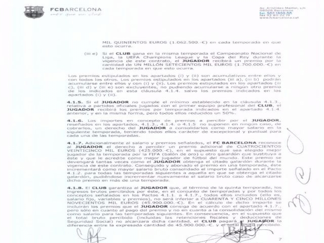 - При титла в Испания му се полагат 637 хил. евро, а в Шампионска лига 850 хил. евро. Дубъл в Испания означава 850 хил. евро, а победа в Шампионска лига и Купата на Краля възлизат на 1,62 млн. евро. Ако спечели Примера дивисион и Шампионска лига, получава около 1,487 млн. евро. Требъл означава 1,7 млн. евро.