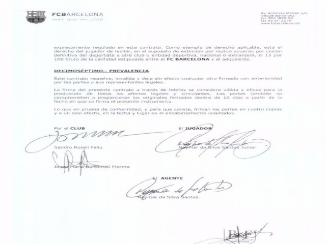 В договора има още един интересен момент. Неймар е задължен да научи перфектно каталунски език, да се интегрира в местната общност и да спазва нейните ценности. В момента Барса полага всички усилия да поднови договора с един от лидерите си, от когото се интересуват повечето европейски грандове.