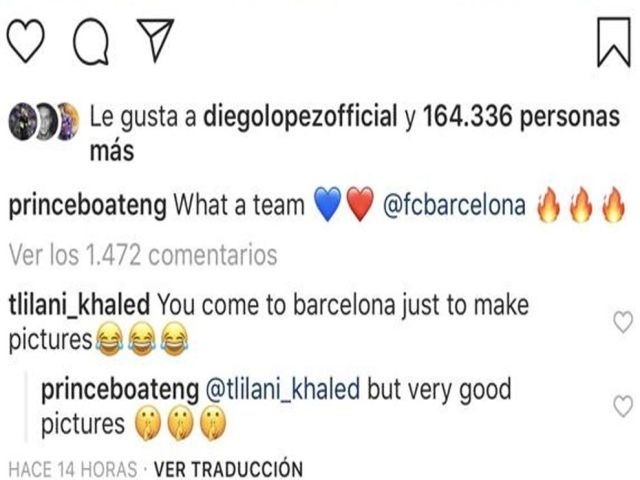 "Какъв отбор" е краткият коментар на Боатенг, предизвикал вълна от реакции. Един от феновете пише "Ти дойде в Барселона, за да правиш снимки", на което Кевин-Принс отвръща "Но много добри снимки".