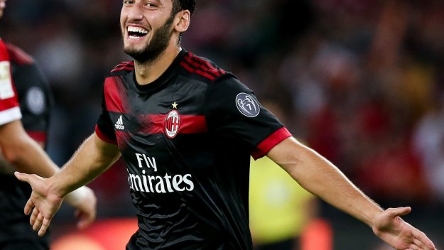 Hakan Cahalananananallgloglu scores for @acmilan. #FCBACM 0-4