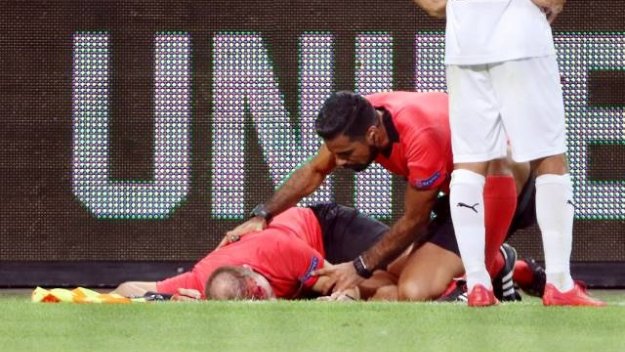 Помощник съдията Фредрик Кливер беше потърпевш от случката, след като беше ударен и повален на земята от чашата. Той получи медицинска помощ и не продължи да изпълнява функциите си.