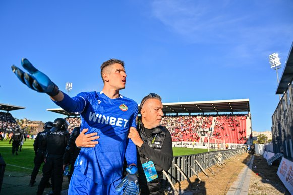 Припомняме, че в 41-ата минута вратарят на "жълто-черните" Даниел Наумов беше уцелен с бутилка в главата. Той отказа отново да пази и беше подкрепен от гостите.