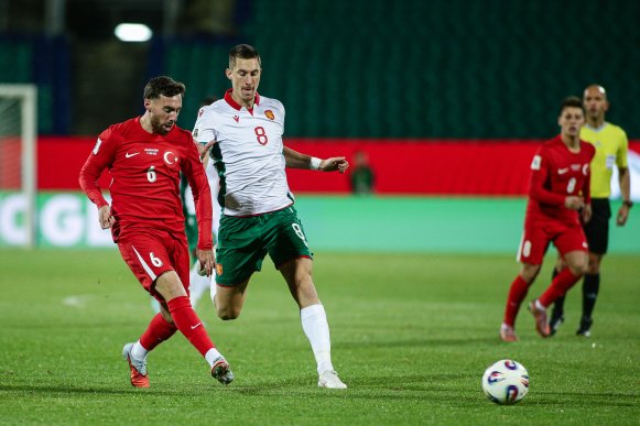 Турците взеха инициативата от самото начало и първата ситуация за тях се откри в 8-ата минута, когато Оркун Кьокчу получи от Огюз Айдън, а техничният му удар кацна върху горната греда и излезе в аут. И само три минути по-късно гостите откриха резултата чрез Арда Гюлер, който направи двойно подаване с Хакан Чалханоглу, елиминира лесно Християн Петров и прокара топката под вратаря Митов. За Гюлер това е първо попадение в Световните квалификации.
