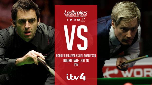 Нийл Робъртсън се класира за четвъртфиналите на снукър турнира Гран При, побеждавайки Рони О'Съливан с 4-1 фрейма.