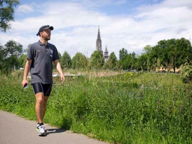 Последните часове на привърженика бяха изключително тежки, след като го валя пороен дъжд, а след това напече силно слънце. Това обаче не го спря и той се приближава все по-близо до германската столица, за да гледа на живо финала в Шампионска лига между Юве и Барселона в събота, 6 юни.