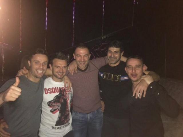 Бившият шеф на Левски Георги Иванов-Гонзо и волейболният национал Теодор Салпаров се забавляваха с най-актуалните фолк парчета в столичен клуб през уикенда. В тяхната компания бяха още двама популярни футболисти - Георги Пеев и играчът на Амкар Перм Захари Сираков, пише Dnes.bg.