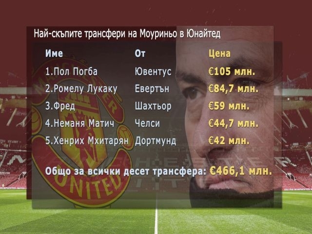 "Една от основните причини за издънките на отбора е скандалът с най-скъпия футболист на клуба Пол Погба. Той беше привлечен от Ювентус срещу 105 млн. евро, но това не попречи на Моуриньо да се скара с него и да го оставя резерва. За целия си престой в Юнайтед, шефовете купиха десет нови играчи на португалеца за почти 470 млн. евро", добави гостът.