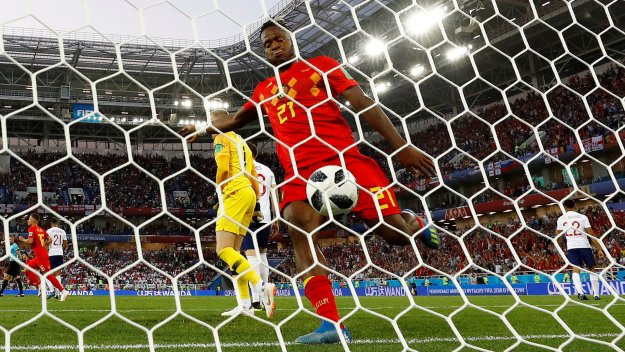 Нападателят на Белгия Миши Батшуай показа, че има чувство за хумор и се пошегува със себе си, след като отпразнува гола срещу Англия снощи по куриозен начин.