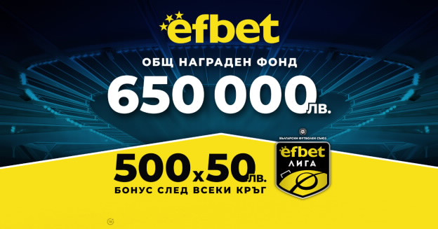 Бонус 500х50 лева с efbet Лига и 650 000 лева Общ Награден Фонд