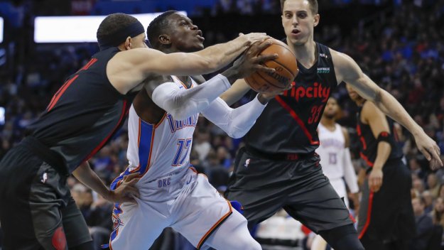 Тази нощ крилото записа 36 точки, а гардът се отчете с 14-ия си трипъл-дабъл за сезона след 29 точки, 10 борби и 14 асистенции и Гръмотевиците победиха Портланд със 123:114.