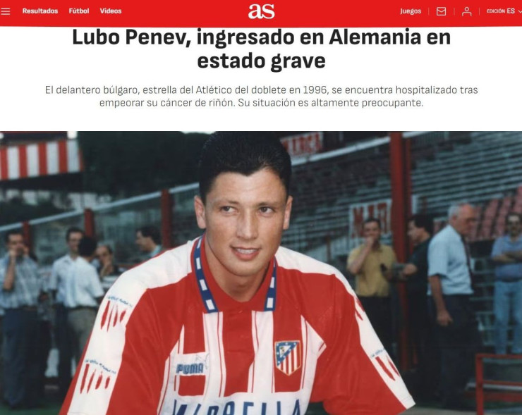 Големият испански вестник AS публикува обширен материал за заболяването на Любослав Пенев и припомня бляскавата му кариера в Испания през 90-те години.